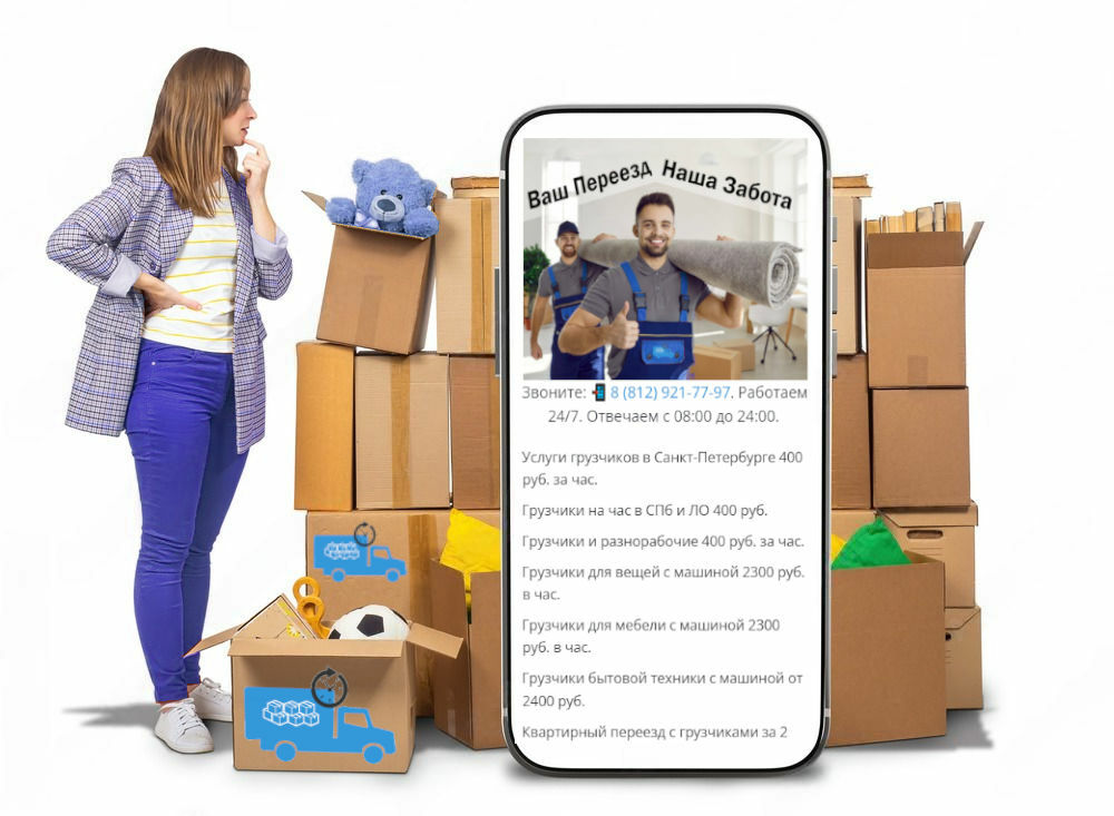 Звоните: 📲 8 (812) 921-77-97. Работаем 24/7. Отвечаем на звонки с 08:00 до 23:00. Оставление заявки или звонок вас ни к чему не обязывают. Сравните нашу смету на услуги грузчиков и переезды с предложениями других фирм.